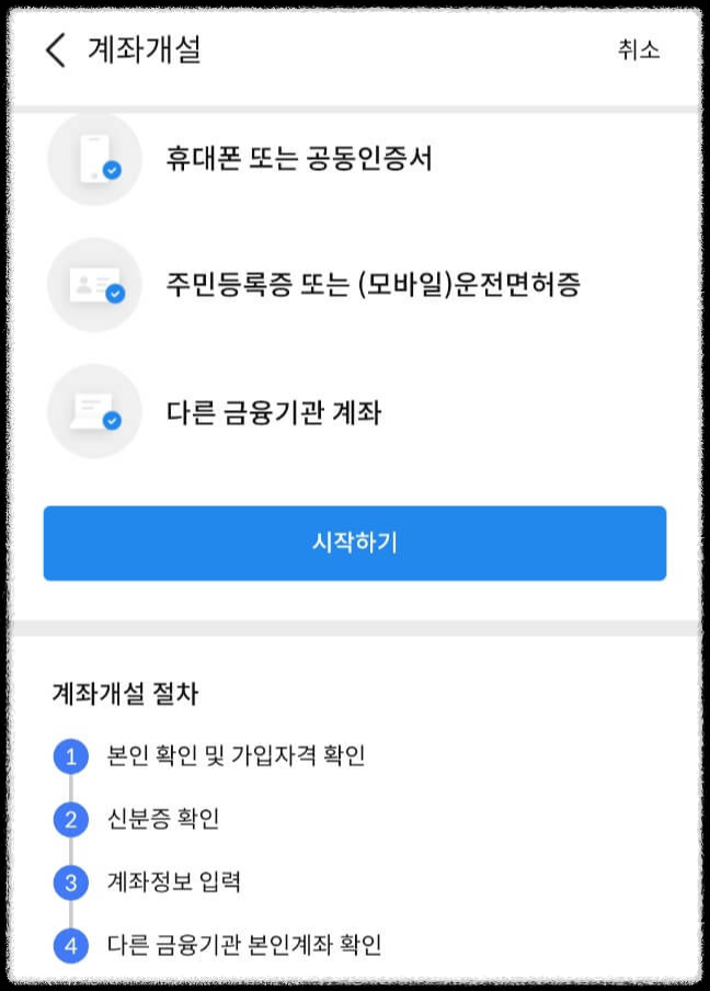 위 순서대로 선택해 주신 다음에 아래 계좌개설 순서를 따라 하시면 됩니다.