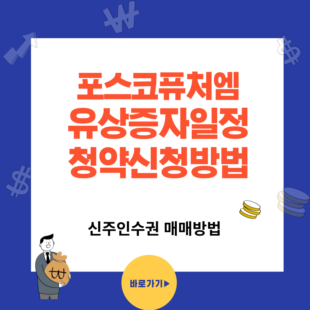 이번 시간엔 포스코퓨처엠의 유상증자 일정을 알아보았습니다. 청약일정을 확인하고, 유상청약 권리가 발생했다면 설명해 드린 유상청약 신청방법과 신주인수권 매매방법을 통해 자세히 보시고 도움 되시길 바랍니다.