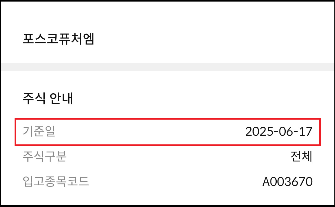 포스코퓨처엠은 자금을 모으기 위해 유상증자를 하며, 기존 주주 대상으로 주식을 싸게 살 수 있는 유상 청약권리 ( =신주인수권)를 배정합니다. 새로운 주식을 받을 수 있는 권리를 갖게 되는 날짜를 신주배정 기준일이라고 합니다.