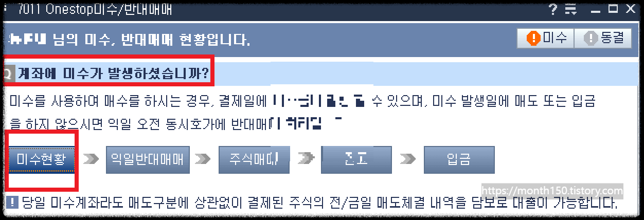 ③ 주식잔고에 미수확인