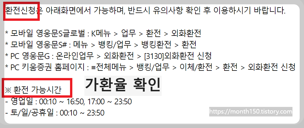 환전가능시간은 위에서 설명한 내용을 참고해 주시면 되겠습니다.